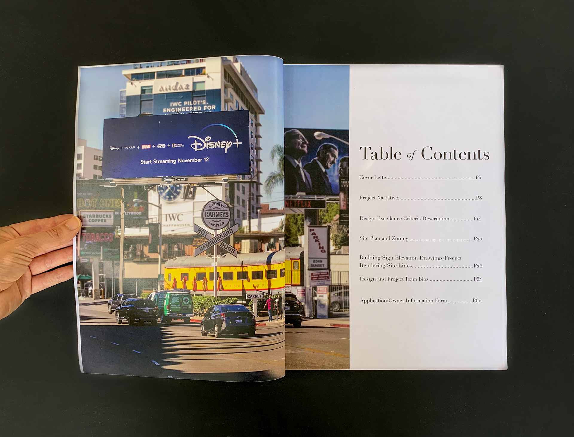 Focusing on layout design, typography, photography and color to submit a proposal the city of West Hollywood from Clear Channel Outdoor.
